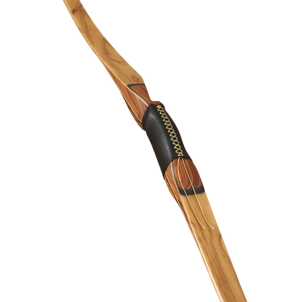 The Shrew Scout is extremely maneuverable, making it ideal for stalking, ground blind hunting, or hunting from treestands. It resembles a recurve bow at first glance, with limbs that work smoothly like a recurve, but with a key difference: the string does not touch the limbs, classifying it as a true hybrid longbow. This unique design ensures efficient power transfer, making it one of the most powerful short hunting bows in traditional archery.